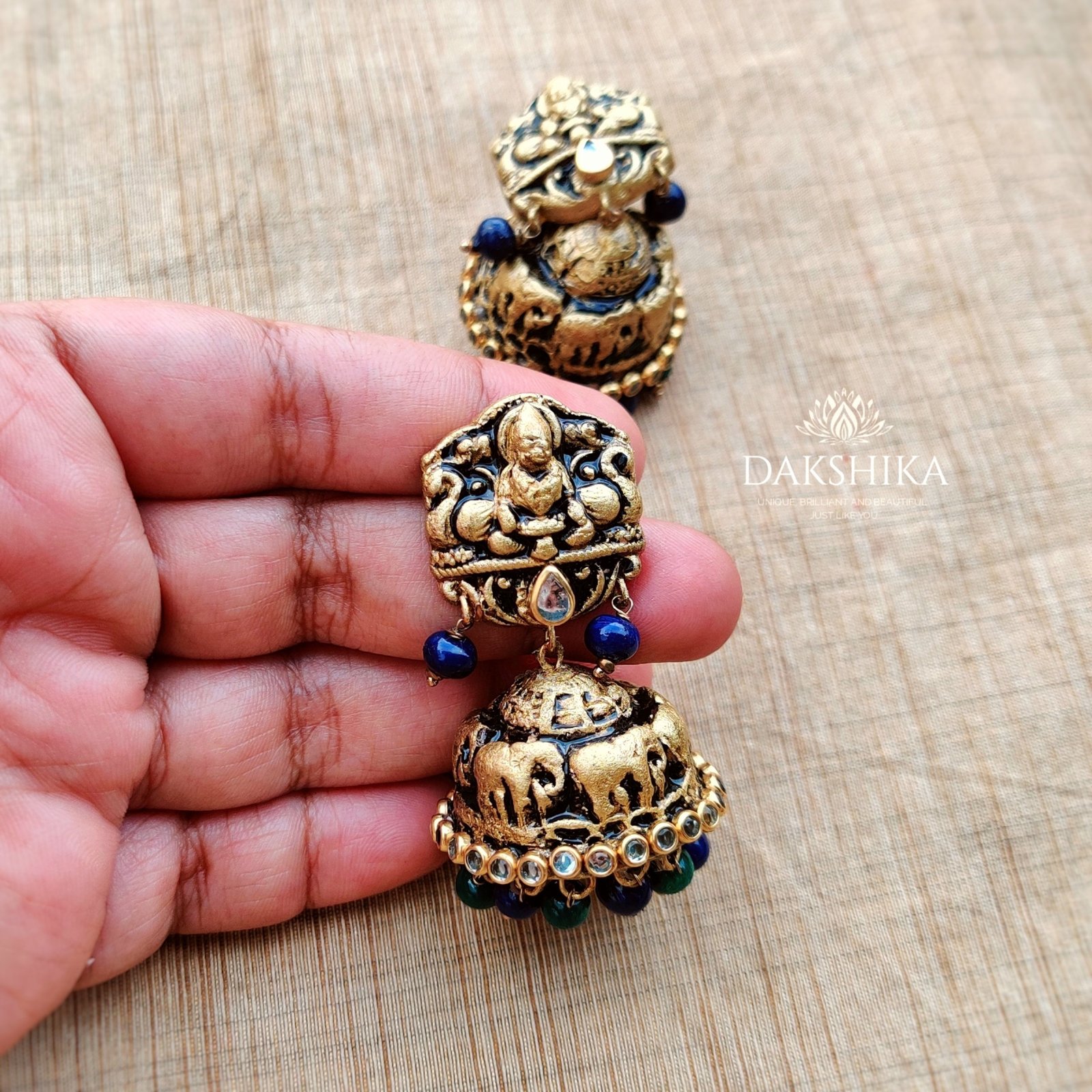 Devika-Terracotta- Big Size Jhumka ( Golden with Black )