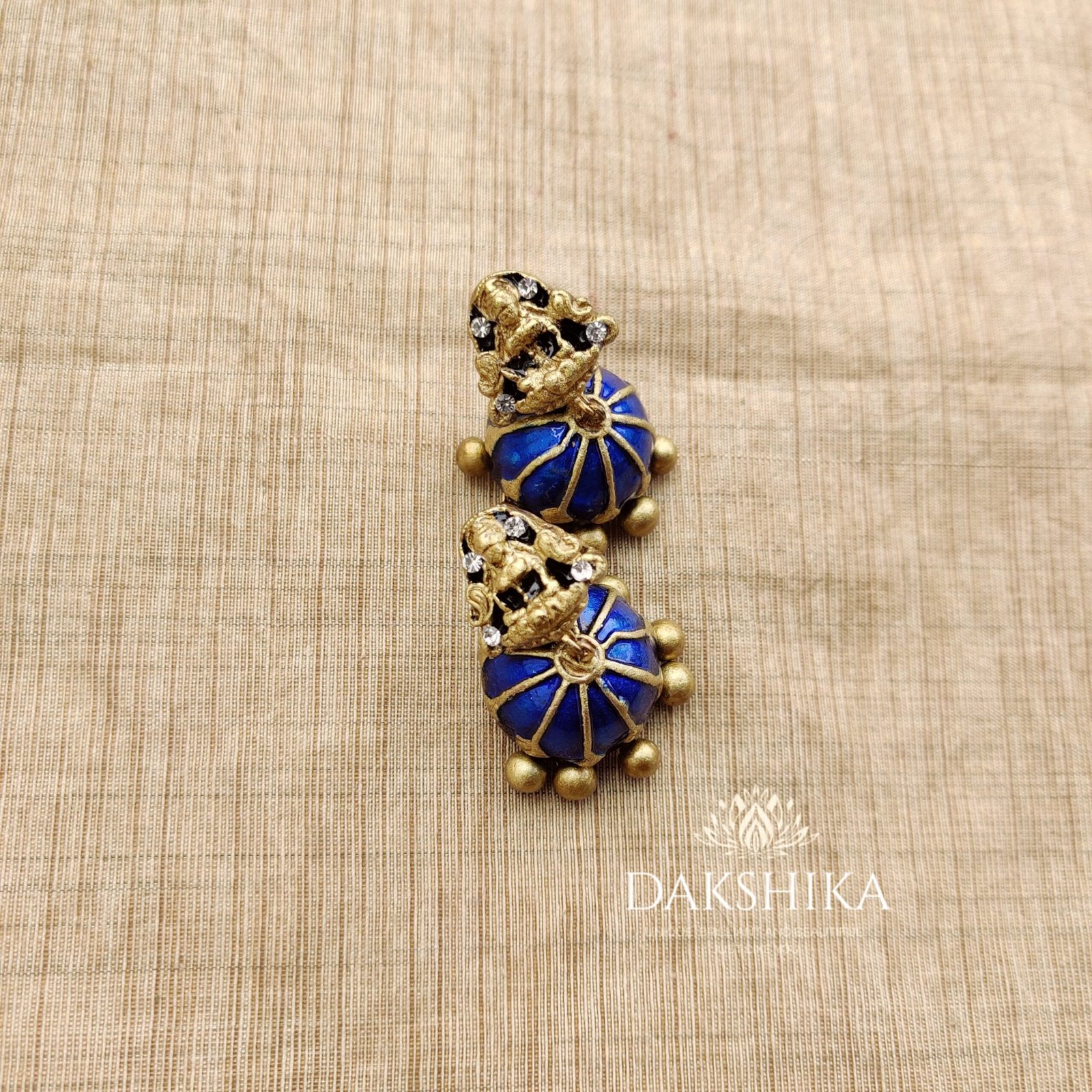 Devika-Terracotta- Medium Size Jhumka ( Golden with Blue )