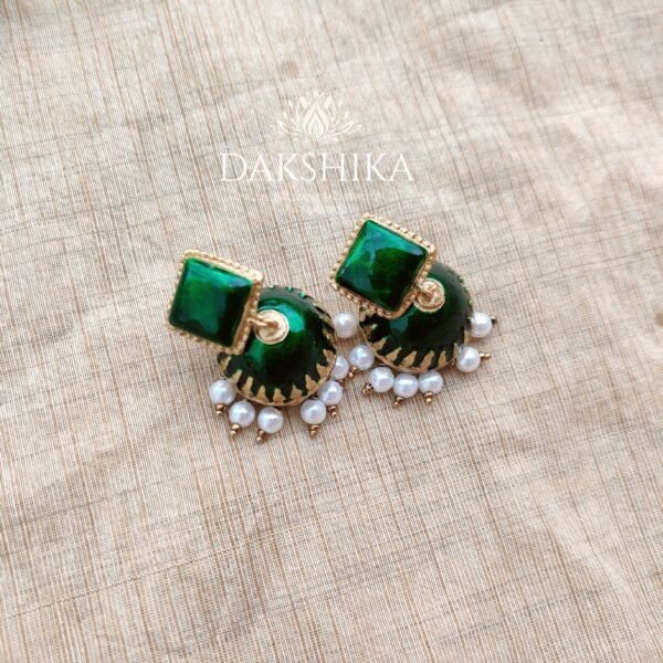 Priya-Terracotta- Medium Size Jhumka ( Golden with Green )