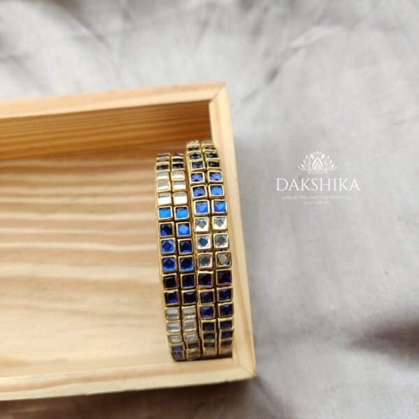 Silk thread Bangles with Kundan stones (transparent and blue stones)