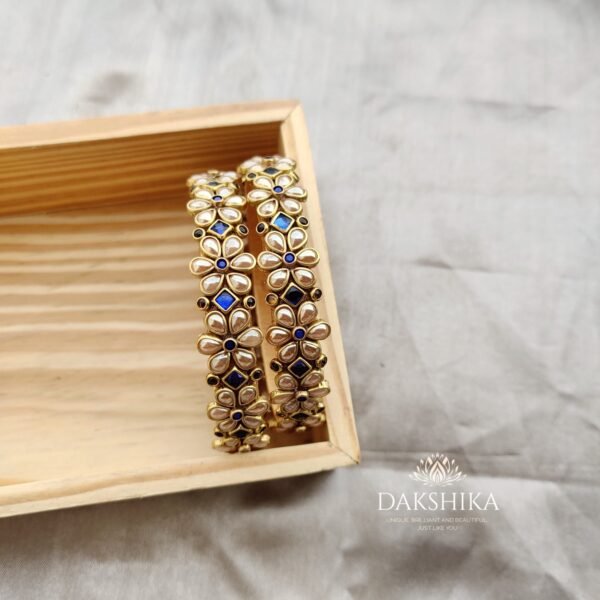 Silk thread Bangles with Kundan stones (golden and blue stones)