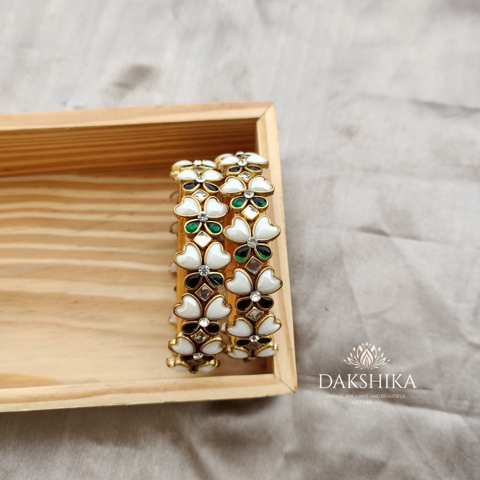 Silk thread Bangles with Kundan stones (white and Green stones)